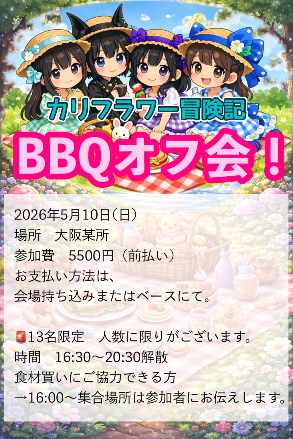 →16:00〜集合場所は参加者にお伝えします。